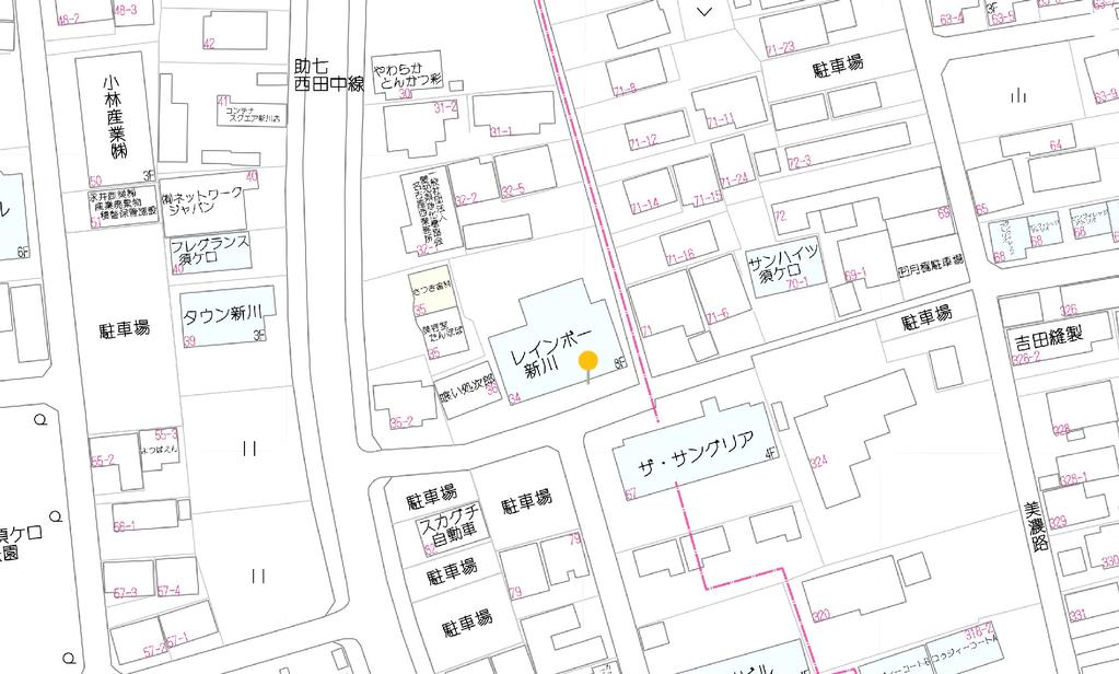 ※地図上の「対象地」は「〒452-0911 愛知県清須市西須ケ口34 レインボー新川」の場所を指しています。実際の場所ではない場合がございます。詳しくはお問い合わせください。