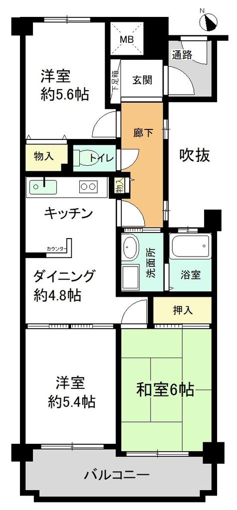 | 間取り | 3DK | 間取り内訳 | 2FD4.8畳×1室 2F洋5.4畳×1室 2F洋5.6畳×1室 2F和6畳×1室 |