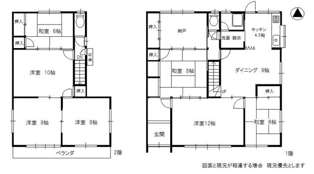 | 特徴 | 二世帯向き、南向き、和室、2階建、南庭、浴室に窓、全居室6畳以上、平坦地 | ||